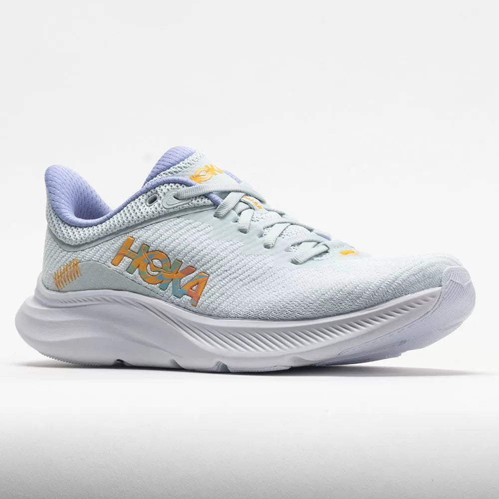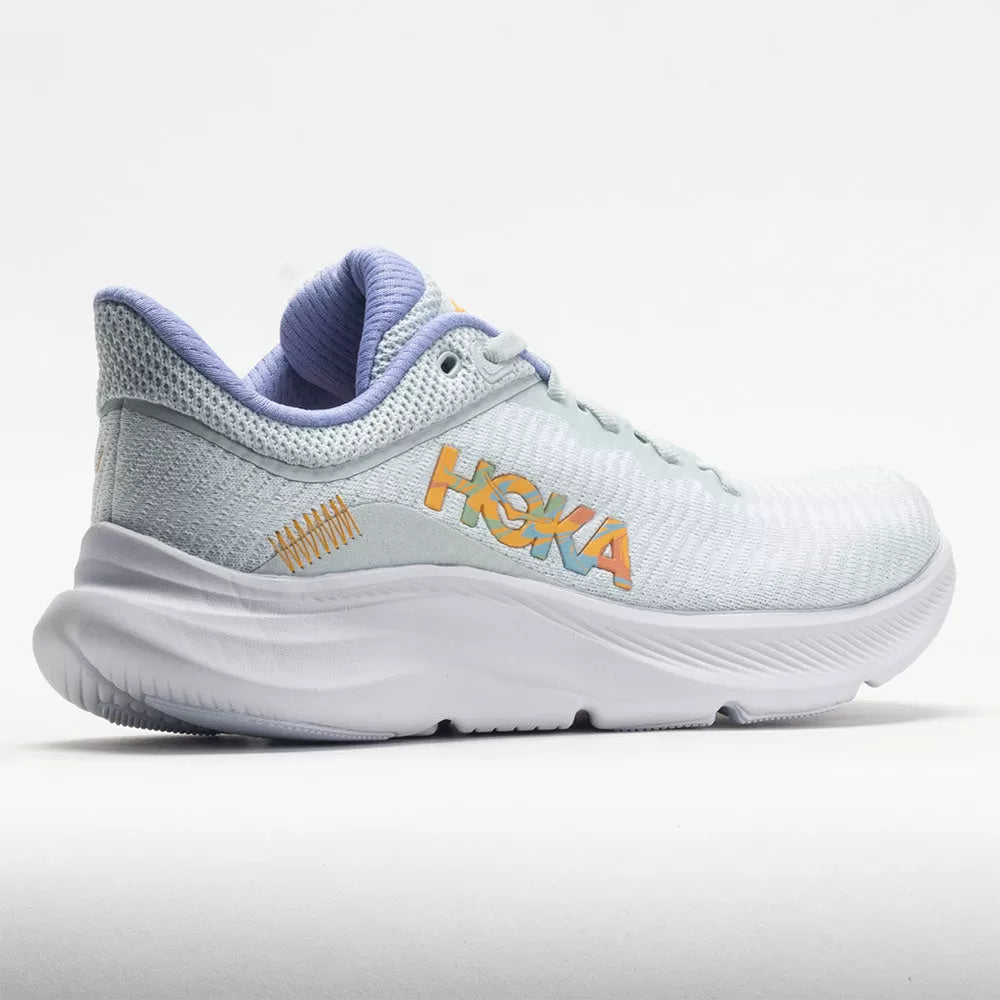 Inspired by the smooth rolling waves of SoCal's Solimar beach. the HOKA Solimar leads a sublime ride during your daily miles. This streamlined trainer features a durable rubber outsole. a balanced midsole and an extended crash pad for an effortless ride. Enjoy firm and responsive strides on the CMEVA midsole while the Late Stage Meta-Rocker technology guides stable transitions. Agile and adaptive. the HOKA Solimar can handle anything workout!