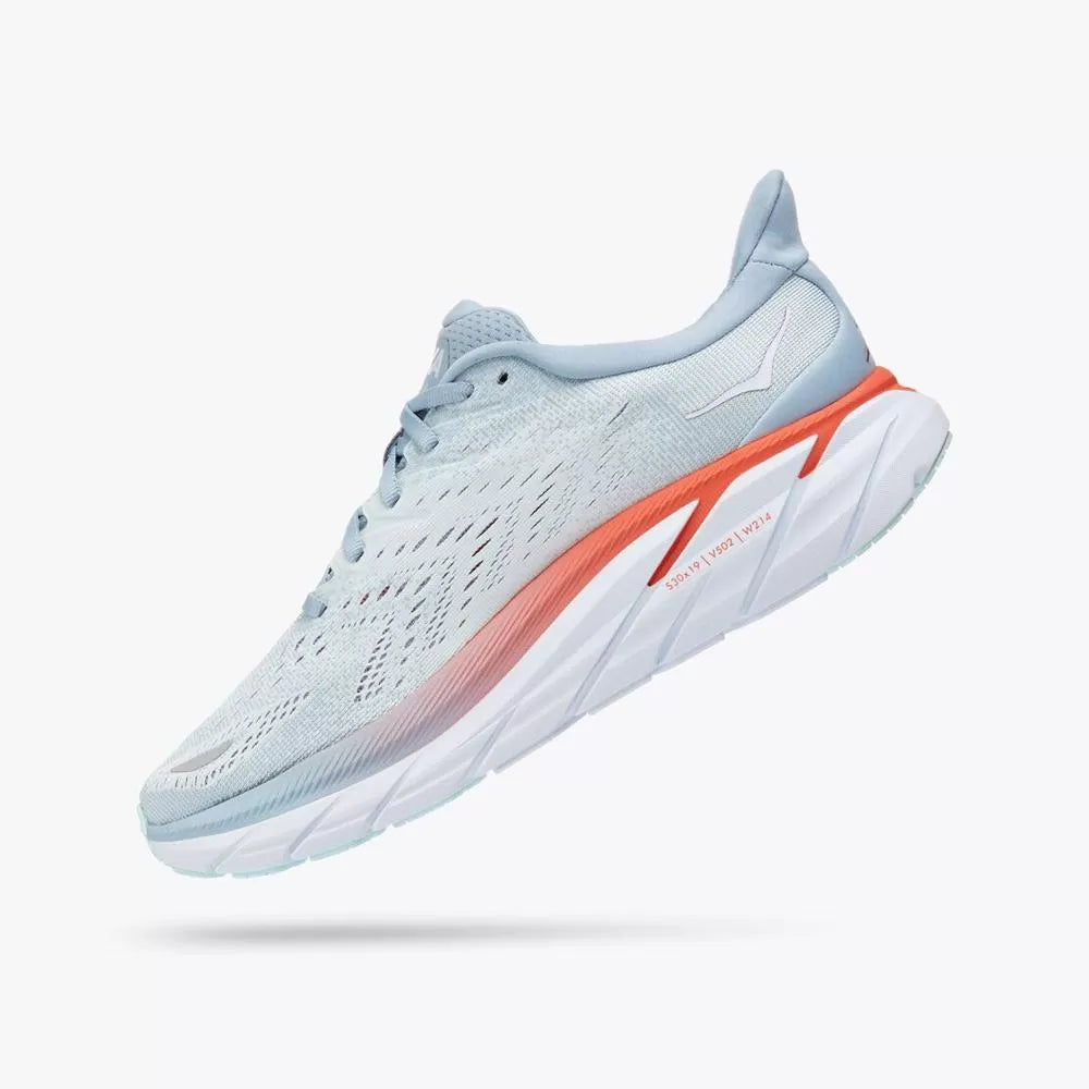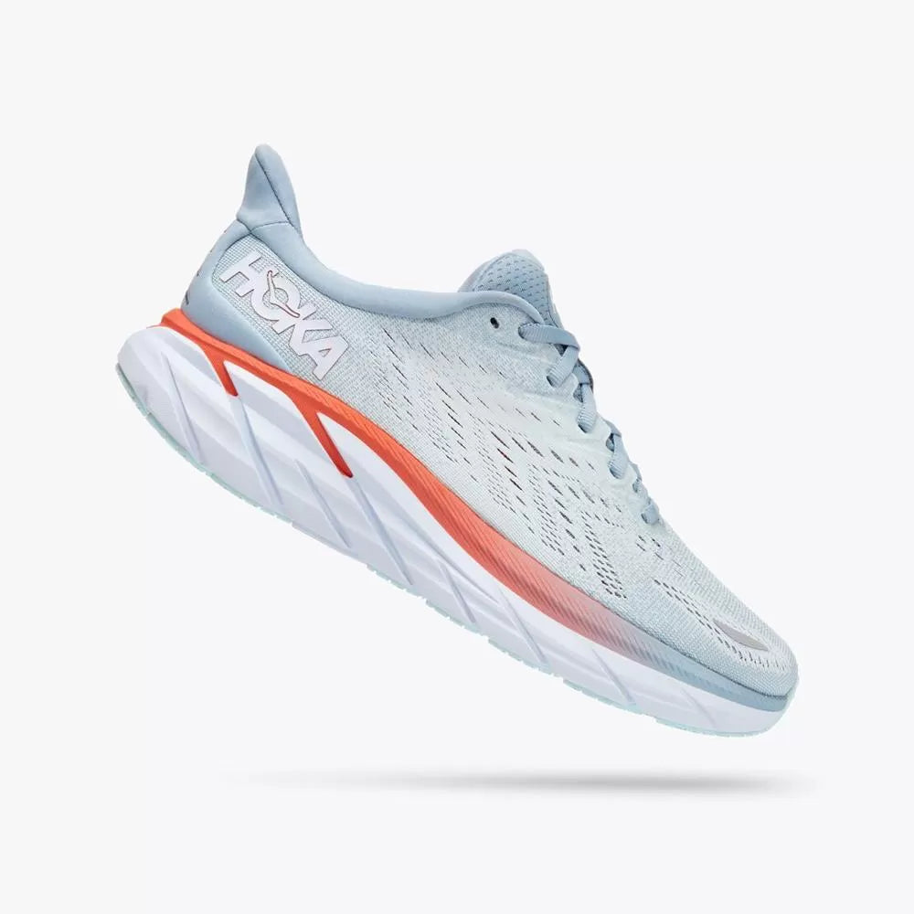 The latest in the award-winning Clifton franchise. the Clifton 8 continues to deliver the perfect combination of soft and light. Crafted with a lighter. more responsive midsole and the same ride characteristics. the Clifton 8 features a streamlined silhouette and updated upper made from engineered mesh.