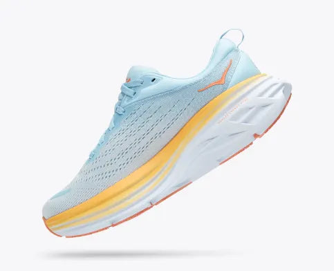 Amplifying core performance features. the Bondi 8 is upgraded with an extended heel. brand-new foam. and pillowed tongue.